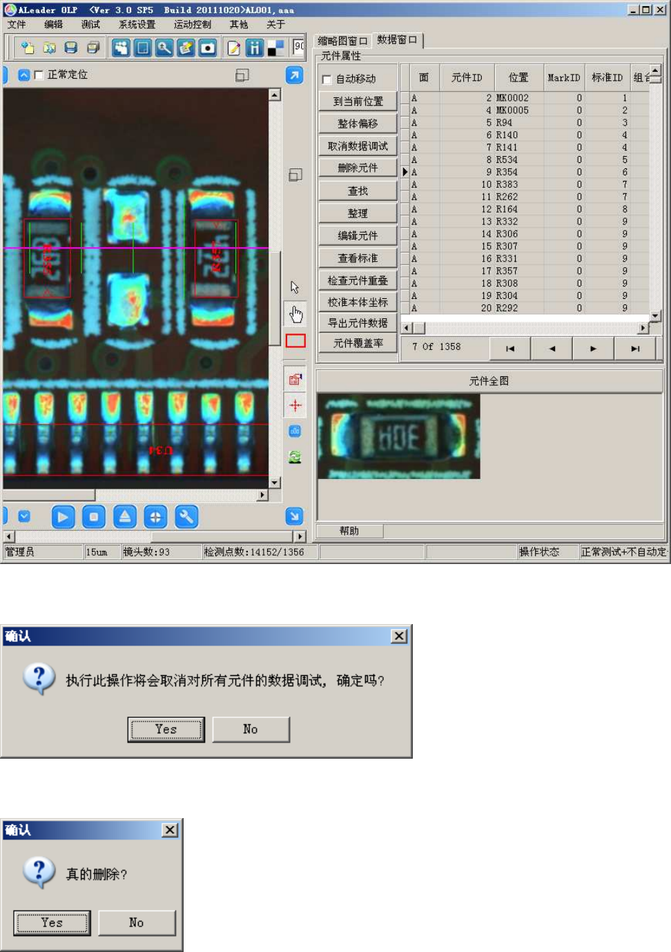 2.6.14 数据窗口 数据窗口 数据窗口 数据窗口 (1) 到当前位 置 镜头运动到 当前元件 中心位置, 并自动选中; (2) 整体偏移 点击选中状态栏 的〔显示 元件〕复选框, 可以看到所有元 件框都偏 离元件所在位置 。这都是 正常 情况,因为贴片 机的坐标 原点与aoi 的坐 标原点不同所引 起的。接 下来我们要对所 有元件框 整体移动, 先找到任何一个 元件框( 一般选靠近板边 较容易找到当前 元件框应 对应到实际位置 ),…