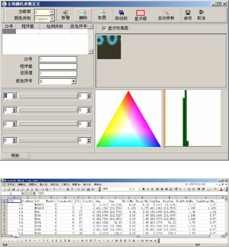 于测量元件的偏移, 使用前先要设定铜箔的抽色参数, 画面如下: