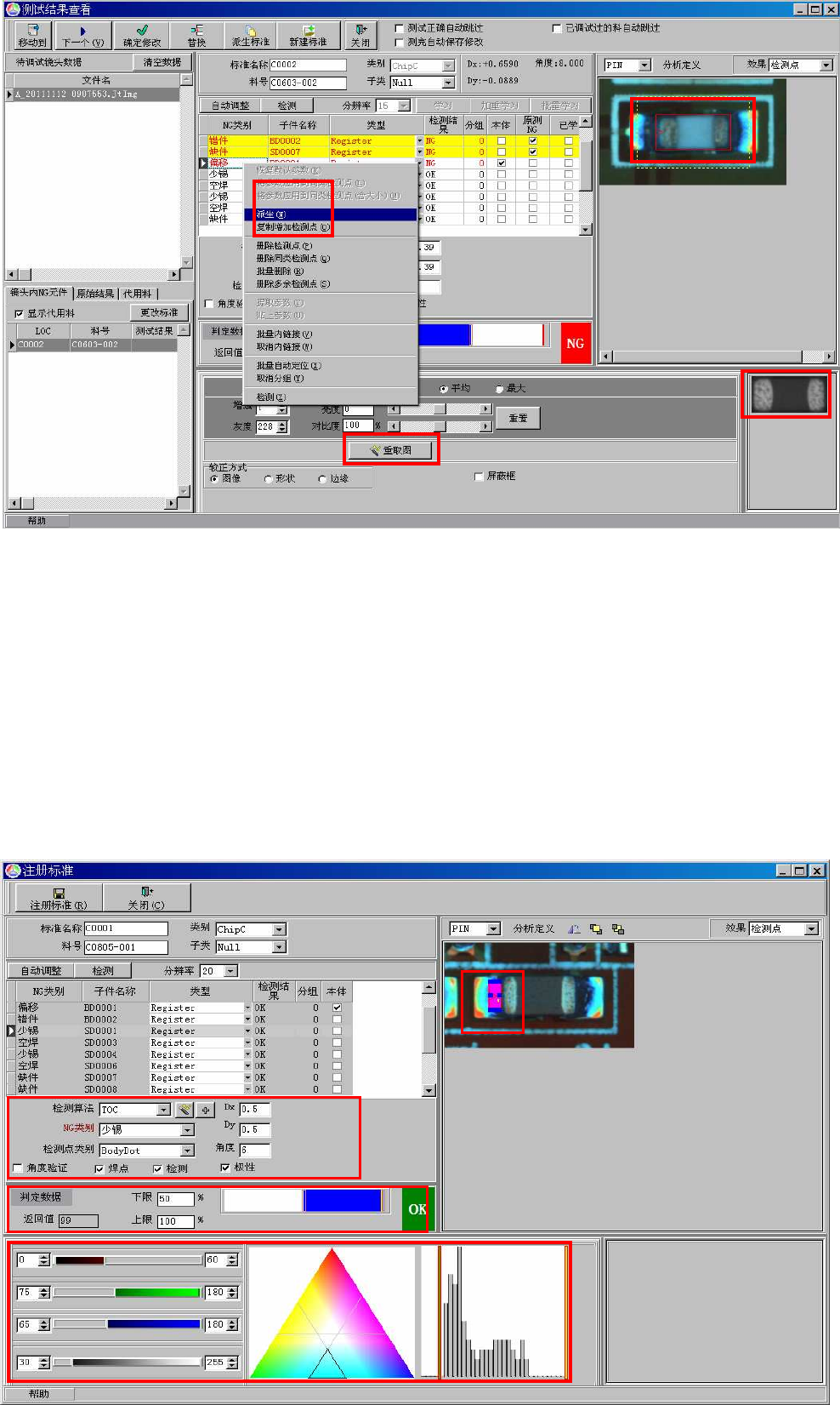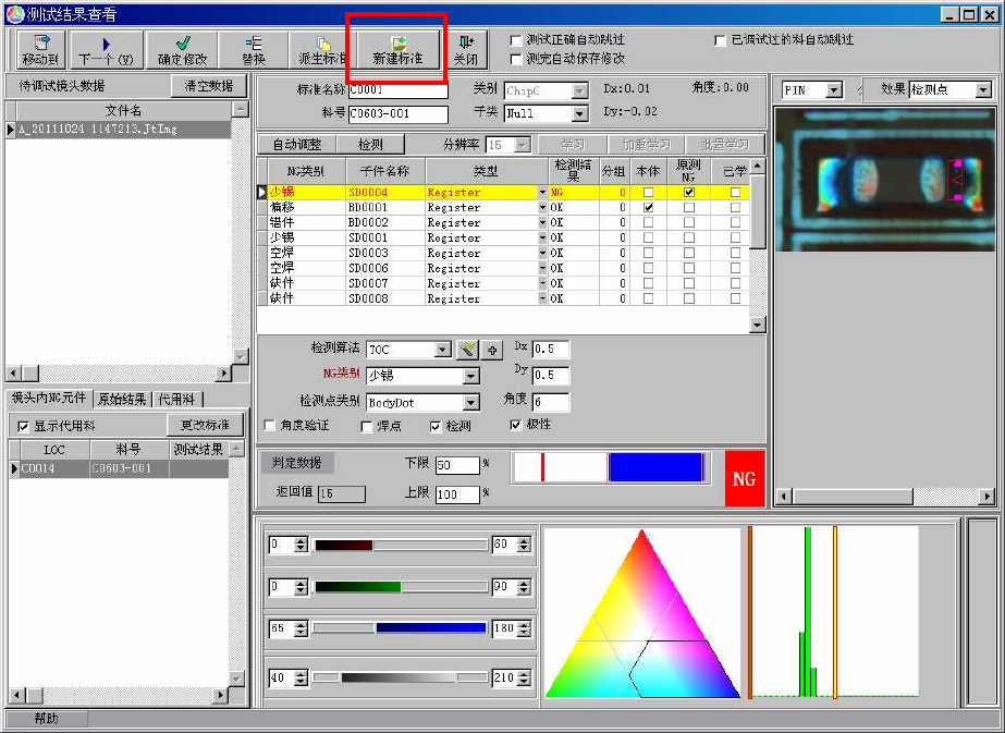 当元件发生“少锡”时,则需要通过调试元件标准,通过改变抽色参数(判定参数),消除此类误报,