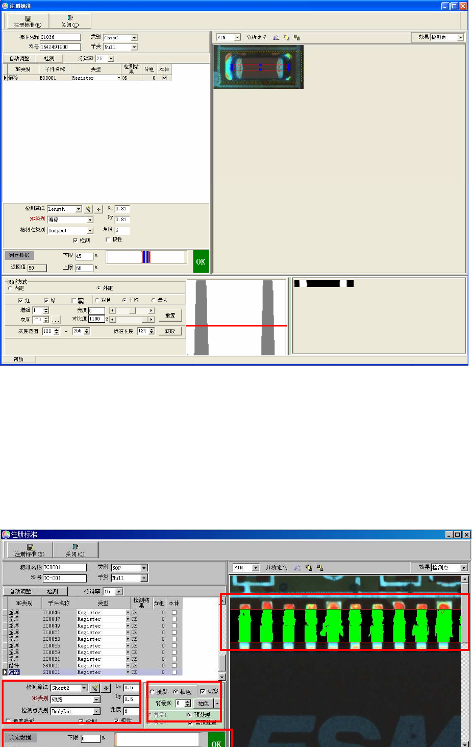 上图为“抽色”的短路检测算法的注册窗体,说明如下: