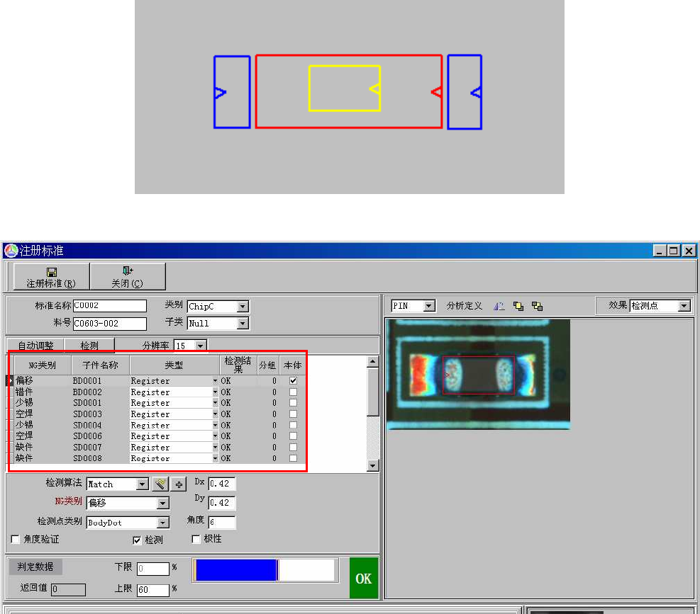 个空焊框、2 个缺件框、1 个错件框。其元件注册示意图如下: