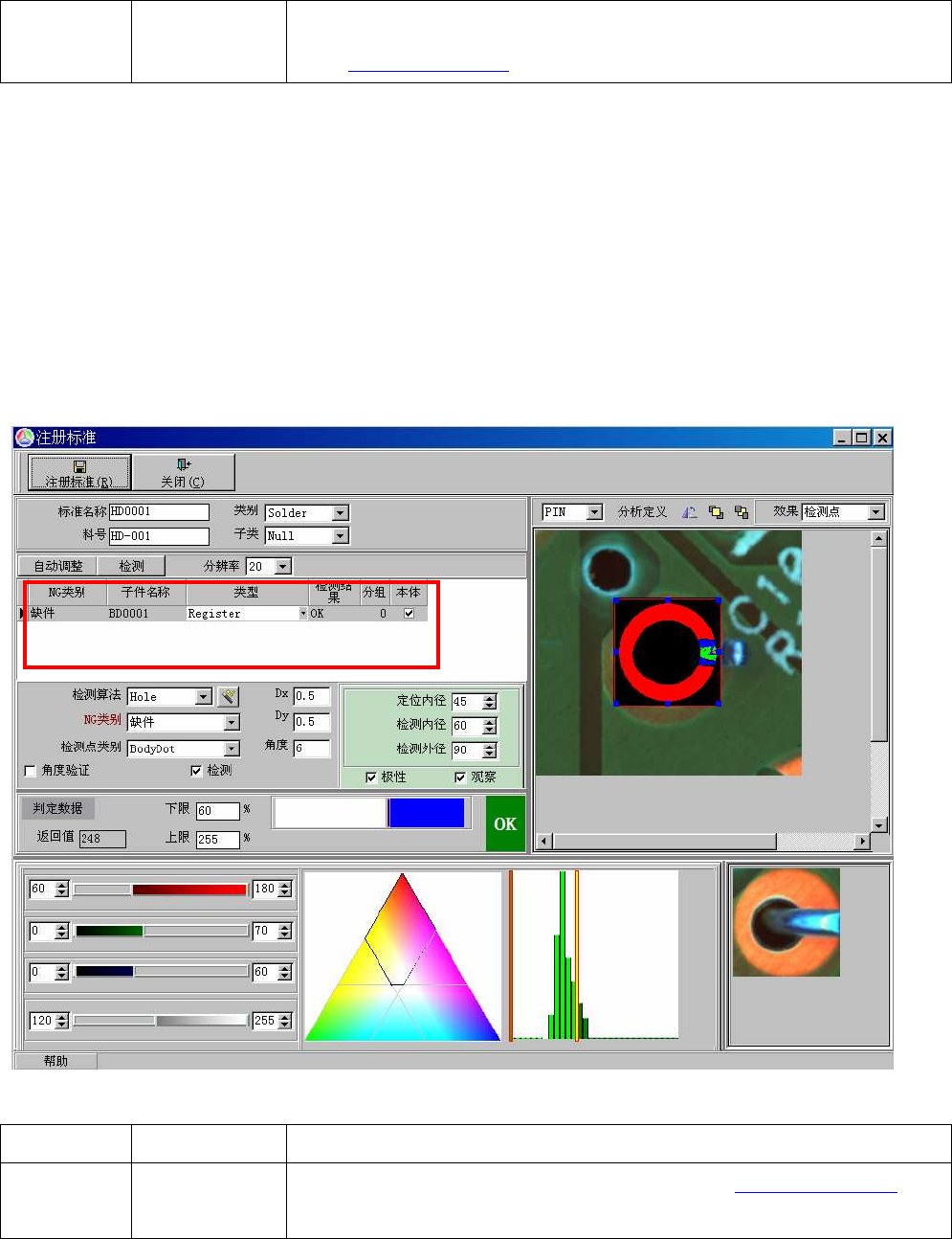 缺件框的作用是检测插件有无。其注册与调试见<红胶的基本检测项>中<