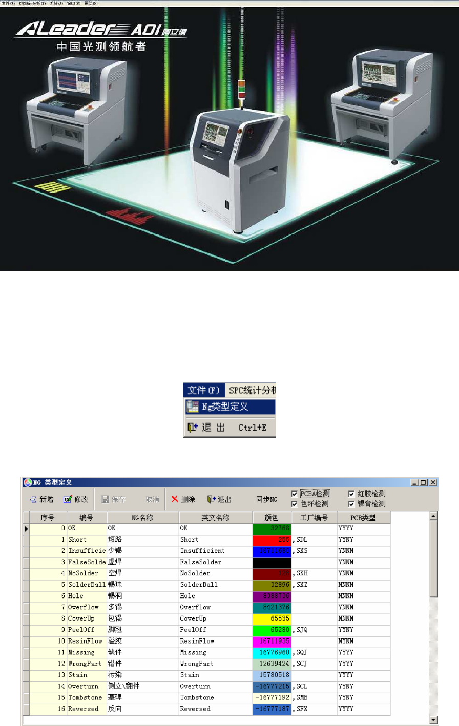⑴新增,修改,删除:对 NG 类型的基本操作,用户可根据需要添加新的 NG 类型,修改已有类型的名