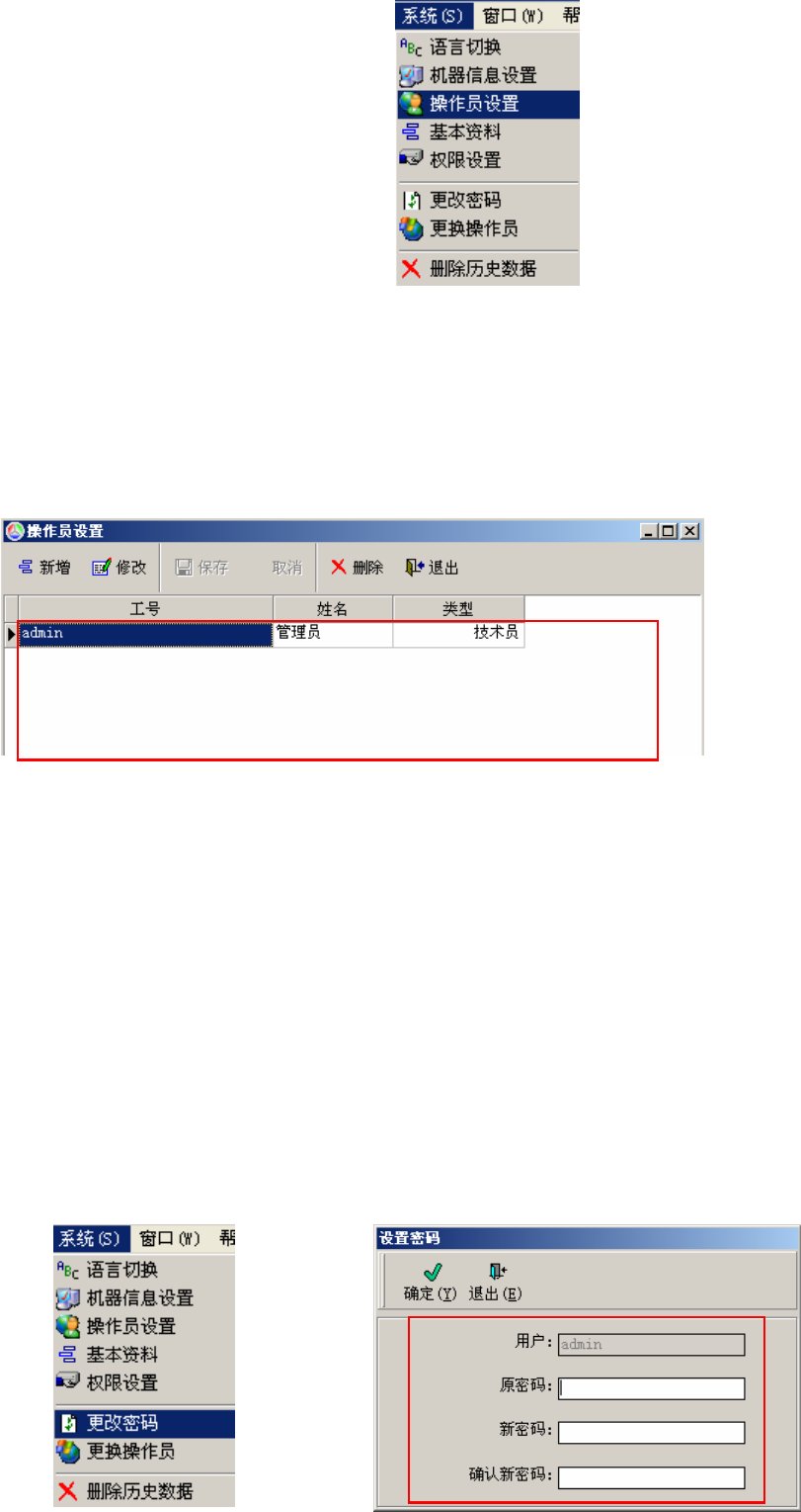 选择菜单“系统”栏下的(操作员设置),打开“设置窗口”。