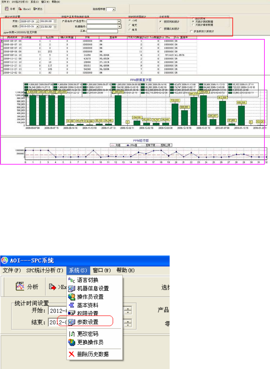 选择菜单“SPC 统计分析”栏下的“PPM 分析运行图”,打开“PPM 分析运行图界面”。