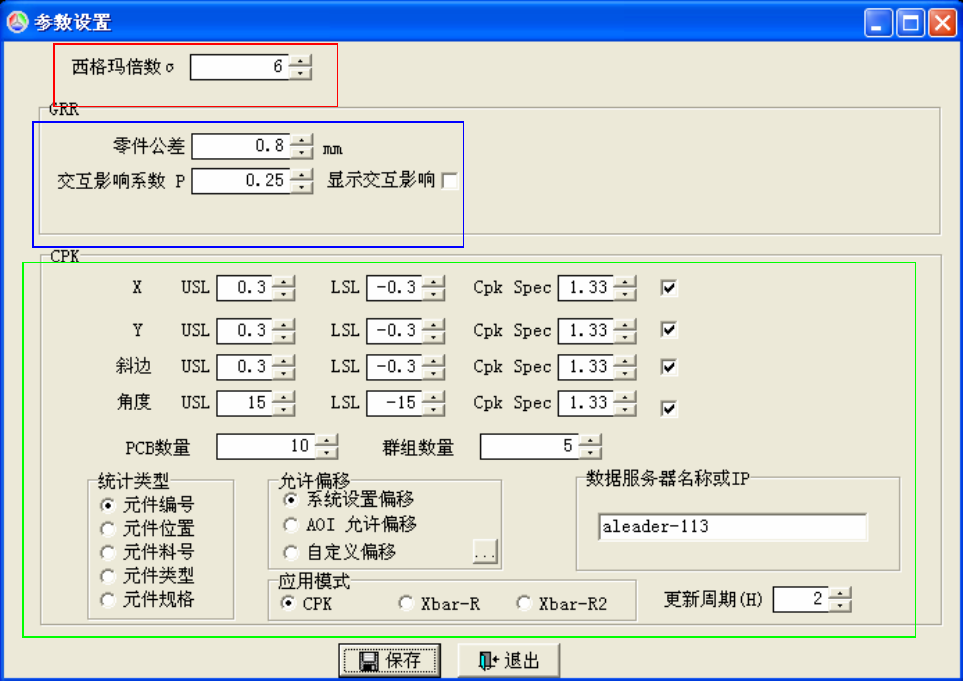 图中绿色框为 Cpk 参数设置,及相关数据参数设置;