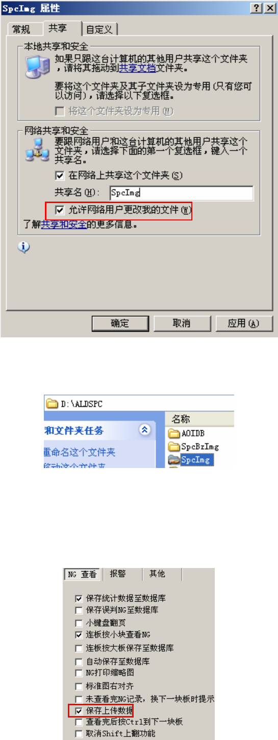 注:1.在哪里查看,就在哪设置共享,和 NG 查看的保存上传数据(在机器上查看,就在机器上设置;