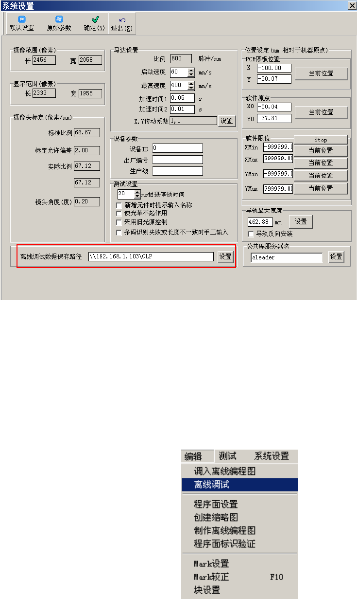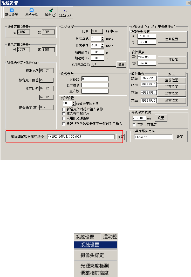 注:要以此类网 络地址的 形式设置路径, 不能直接设置本 地文件目 录。 9.2 机器设置 机器 设置 机器 设置 机器 设置 打开机器软件上 的系统设 置: 选择菜单“系统 设置”栏 下的“系统设置 ” ,打开“ 系统设置”界面 。 将离线数据保存 路径设置 为公用文件夹的 路径