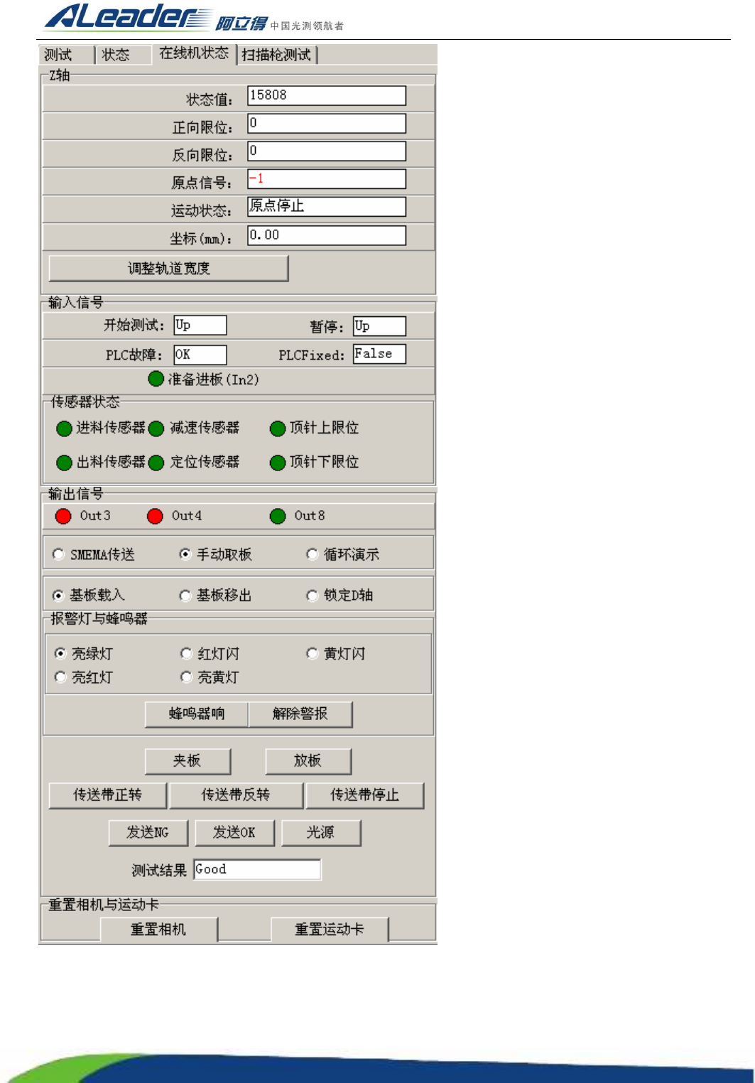 状态一栏是查看机器各信号状态的,机器发生故障时,可以用来检测出发生故障的具体位置。