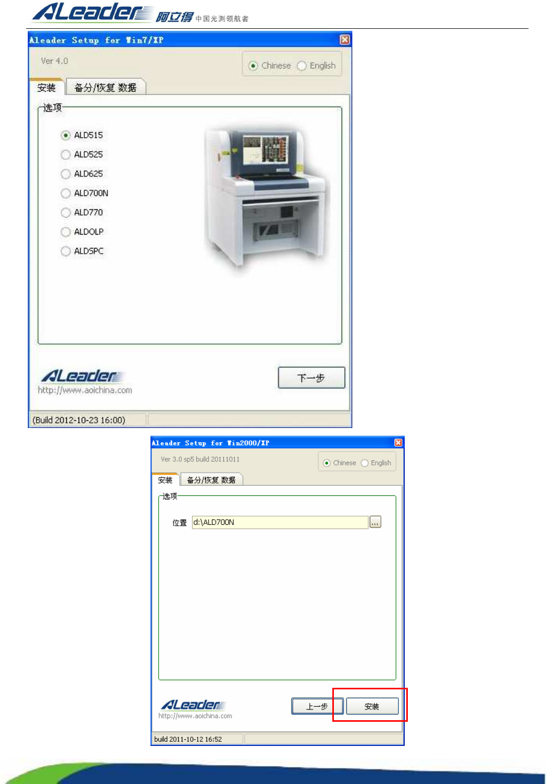 默认 D:\ALD700N),
