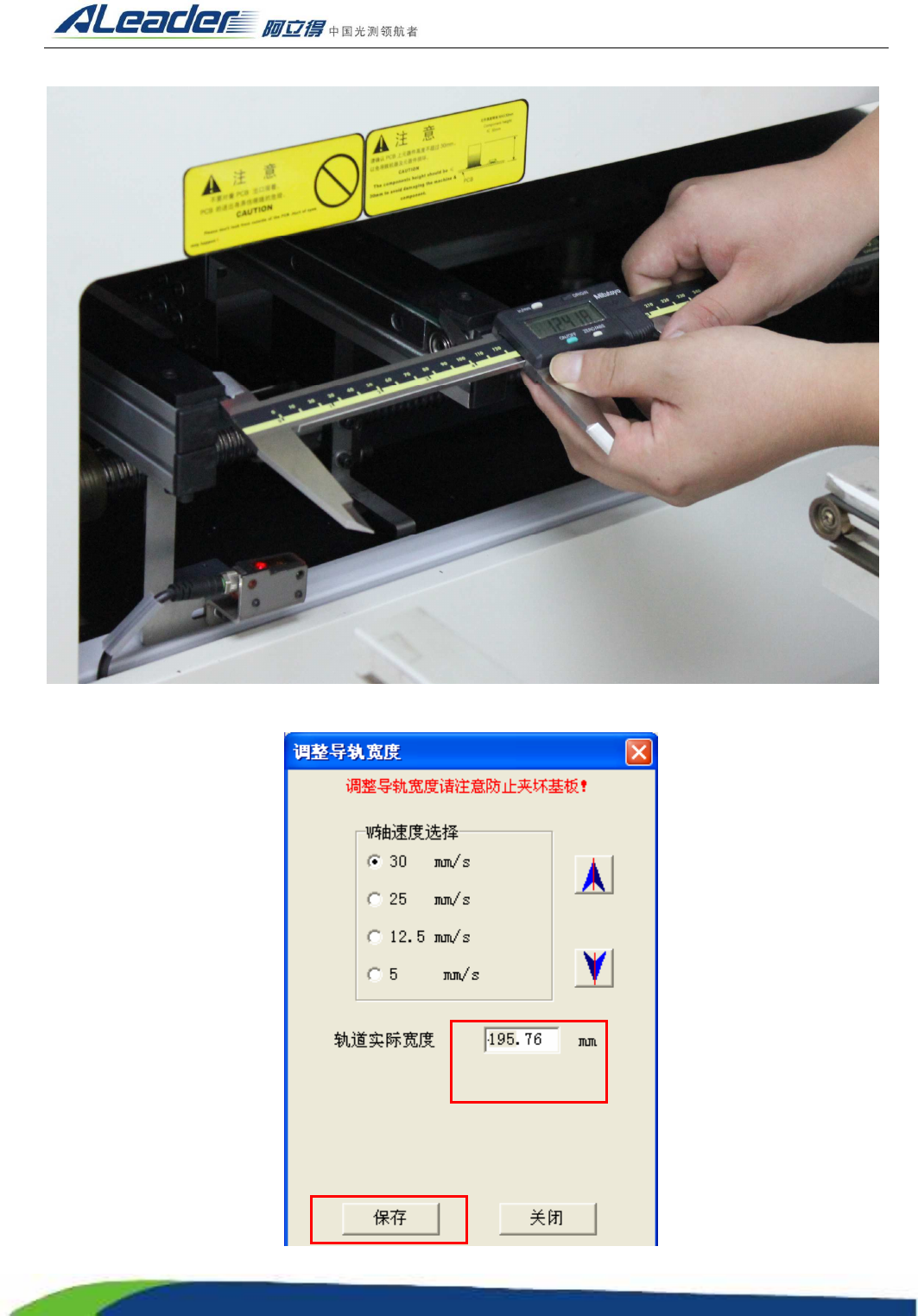 调整好轨道宽度,放入 PCB 板,在 PCB 上找到一个点(离限位 35mm 以上,其附近无类似图案):