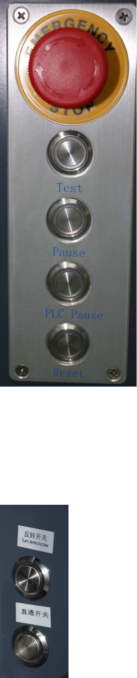 PLC Pause(PLC 暂停按键):按下此按键时 PLC 停止工作,警示灯红灯亮。