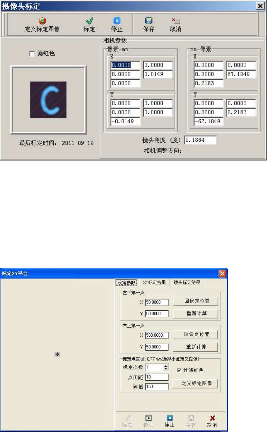 单击〔定义标定图像〕按钮,确定标定图像;然后单击〔标定〕,机器自动进行标定工作。标定自动完成后,
