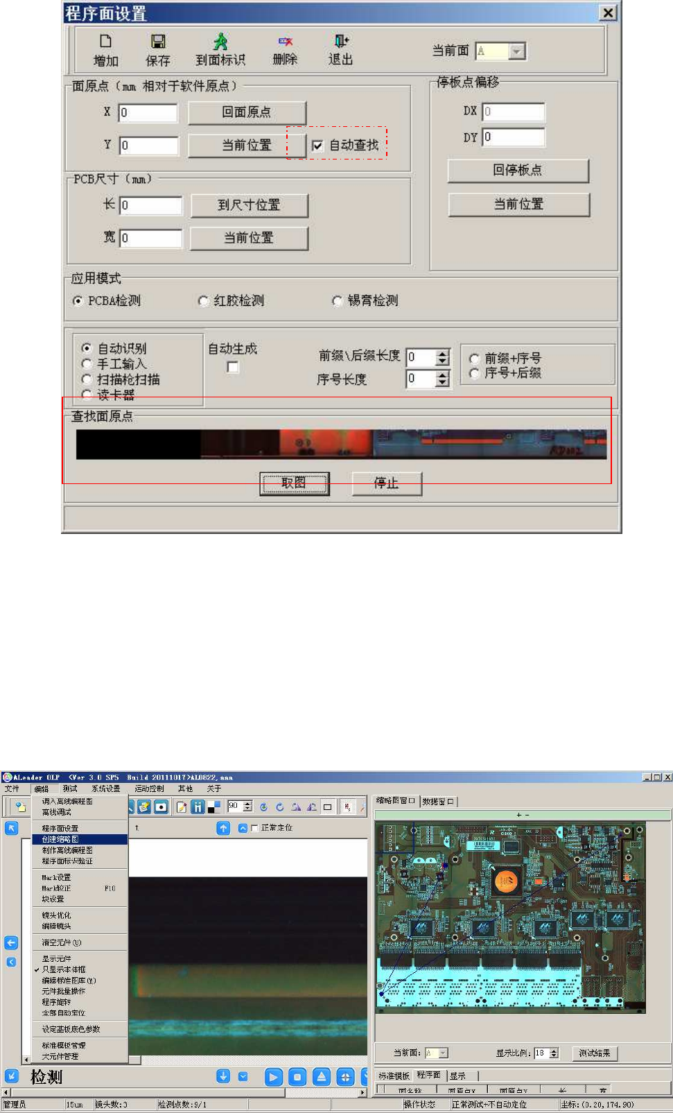 内容, 然后点击取图, 机器就会自动抓取靠近轨道下沿的图像, 我们可以从图像中找到 PCB 板左下角位置,