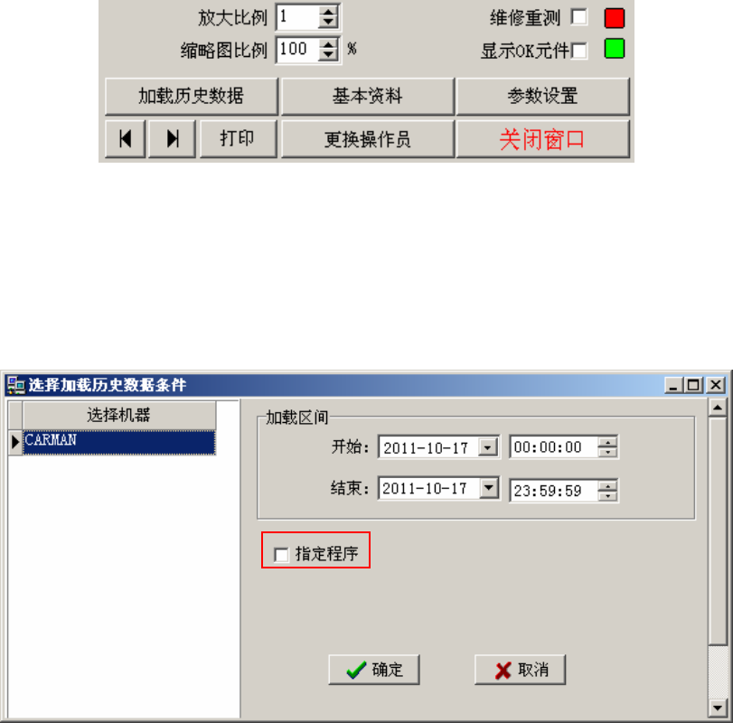 加载历史数据可以查看具体时间段内的 NG 数据,勾取指定程序后,可以选择具体程序。