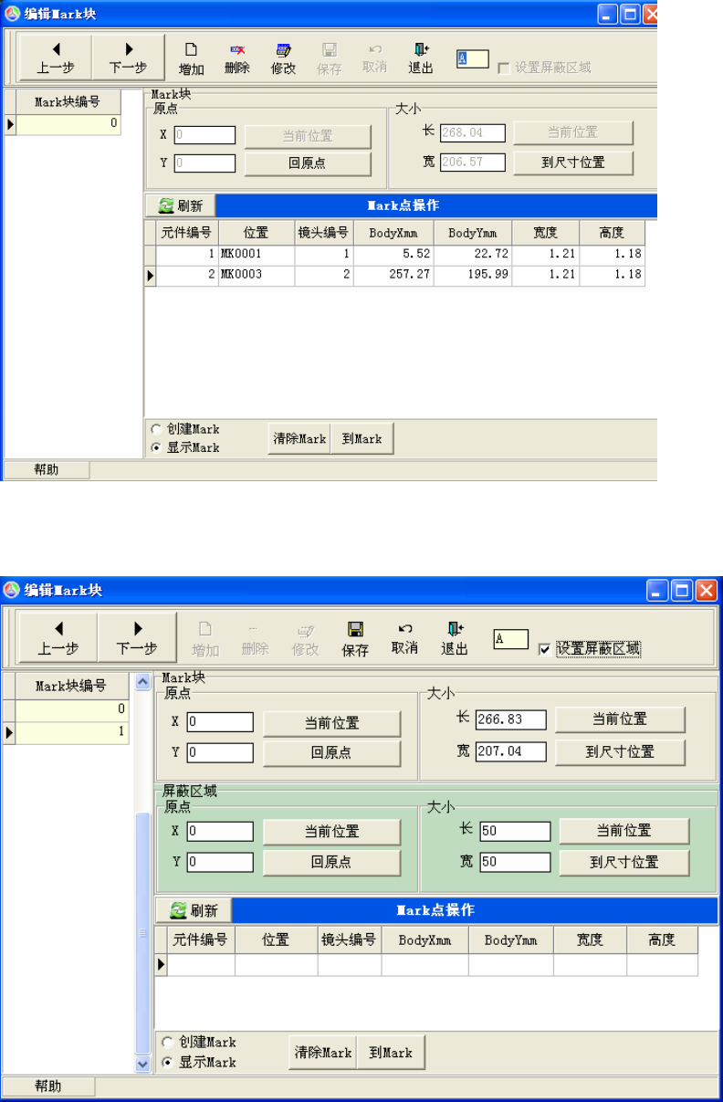 增加: 增加一个 Mark 块, 一个 Mark 块一般包含两个 Mark 点(允许 1-3 个 Mark 点), 通过设定 Mark 原点与