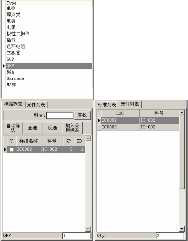 标准列表按分类排列, 以便查找, 最下面显示当前类别下共有多少标准, 而元件列表指的是当前标准共有哪