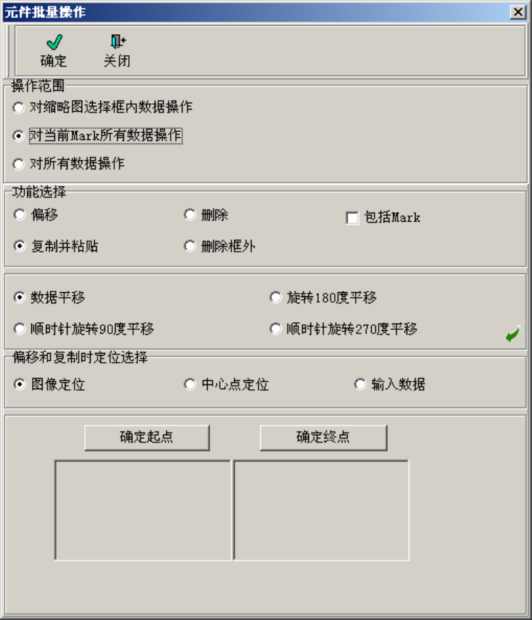 菜单“编辑”栏下的“元件批量操作”弹出操作窗口,同时在编辑区出现个小“选择框”,拖动选择框让“选