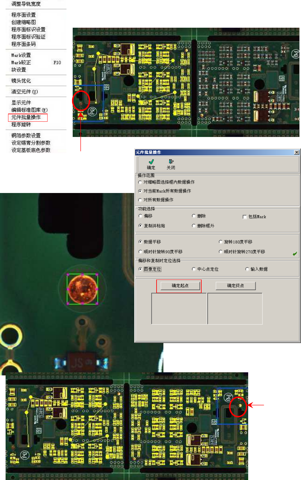 菜单“编辑”栏下的“元件批量操作”弹出操作窗口,同时在编辑区出现个小“选择框”,拖动选择框让“选