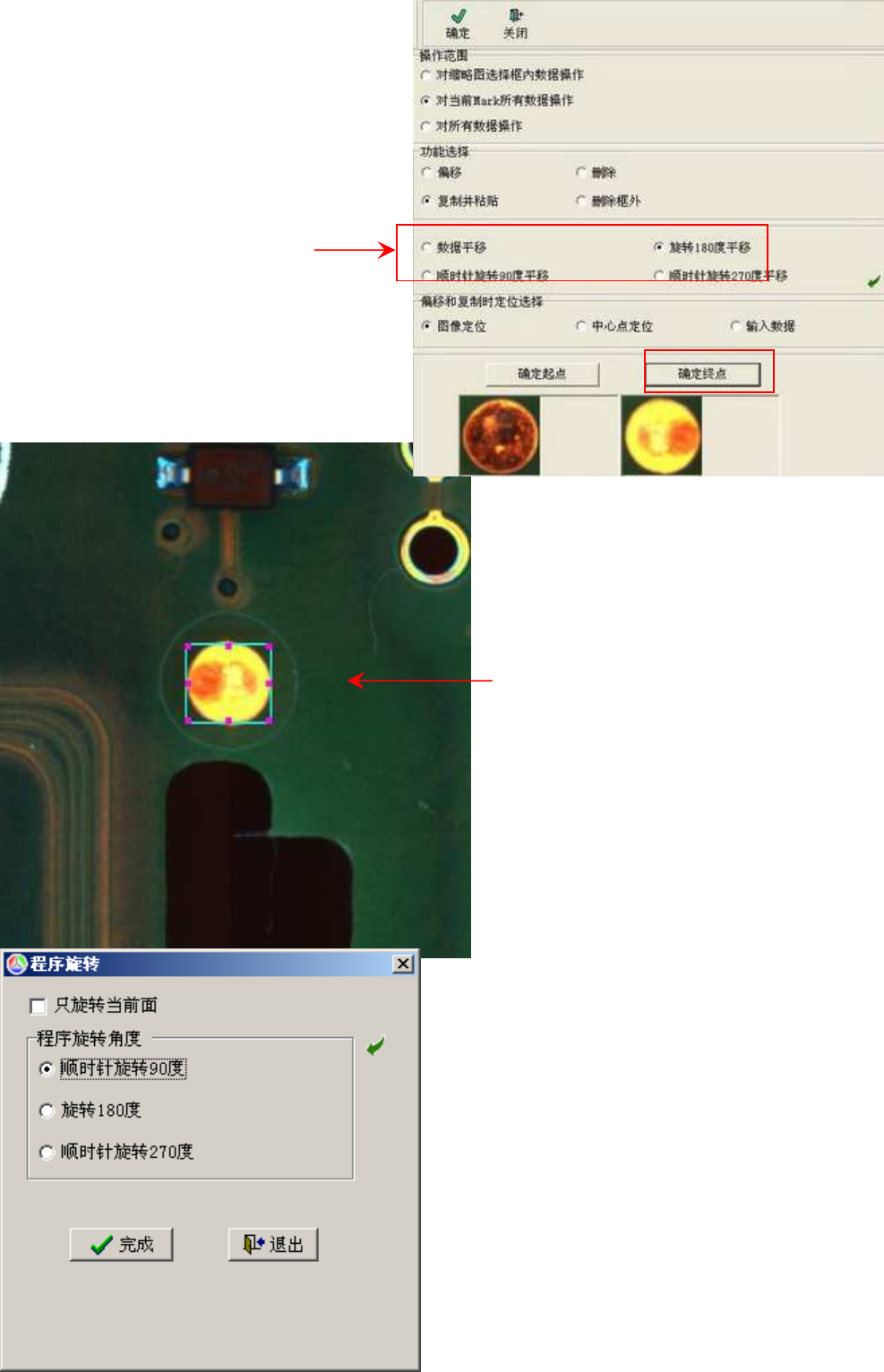 择框”框住要定为“起点”的图像,然后把镜头移动到第二块板的同样位置框起同样的图像作为“终点”,