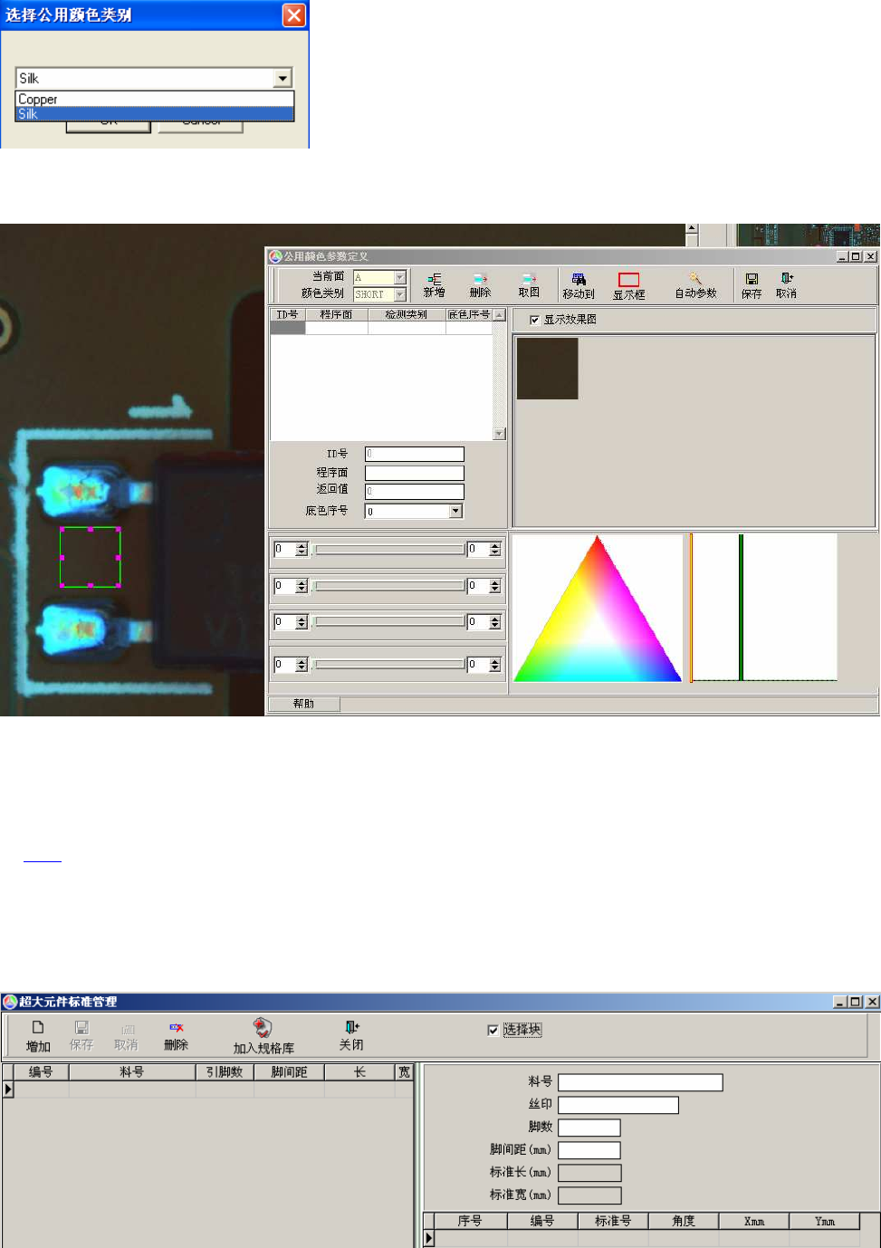图中绿色的框为取图框,用来提取底板背景颜色,按下取图按钮即可提取。