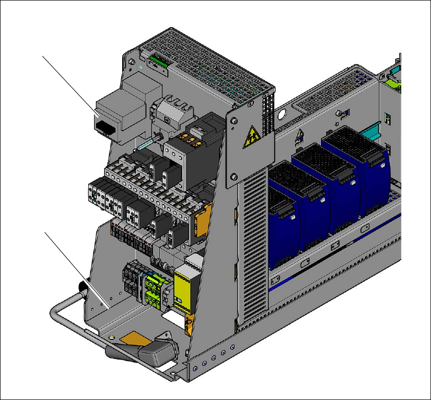 Betjeningsvejledning SIPLACE X-serie 2 Drifts sikkerhed Fra softwareversion 706.1 SP1 Udgave 10/2014 DK 2.10 Låsni ng af automaten og advarselsskiltenes placering 105 2 Fig. 2.10 - 1 Motorværnets placering 2 (1) S trømfo…