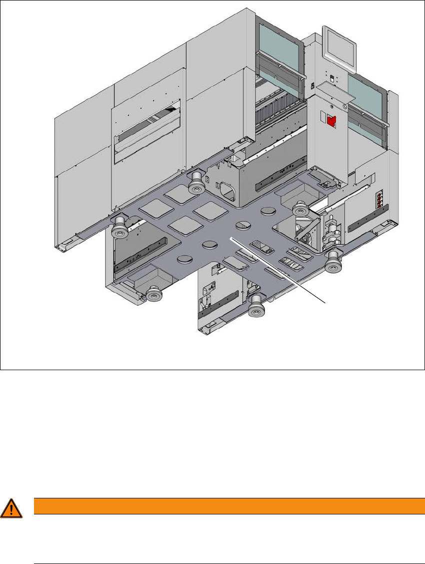 4 Opstilling og ibrugtagning Betjeni ngsvejledning SIPLACE X-serie 4.3 Opstilling af automaten Fra softwareversion 706.1 SP1 Udgave 10/2014 DK 242 4 4 4 4 ADVARSEL Fare for skader pga. for sto r gaffelafstand! En forstør…