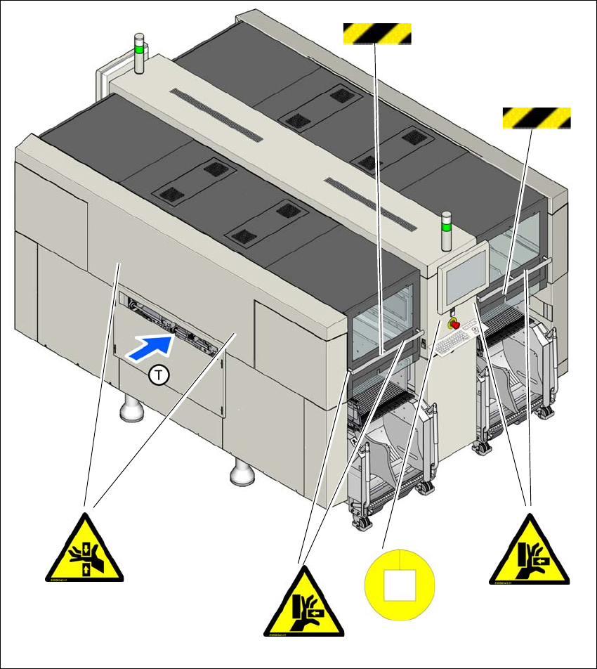 Fig. 2.2 - 1 Advarselsskilte ved automaten - del 1 (eksempel SIPLACE X2 S / X3 S / X4 S)