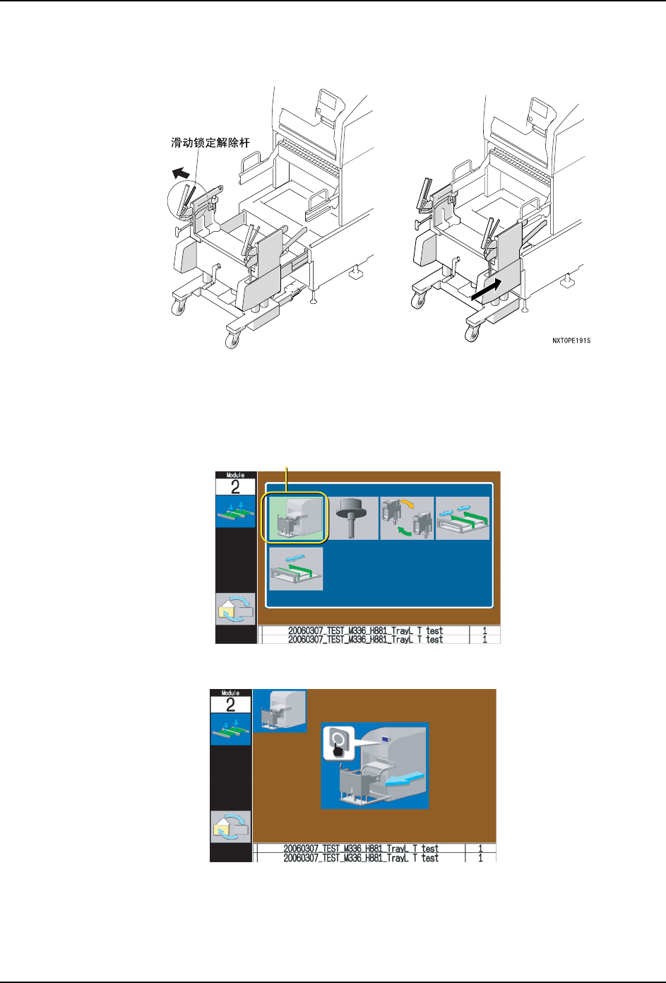 9. 请提起托架锁定解除杆后,拉出料站托架。