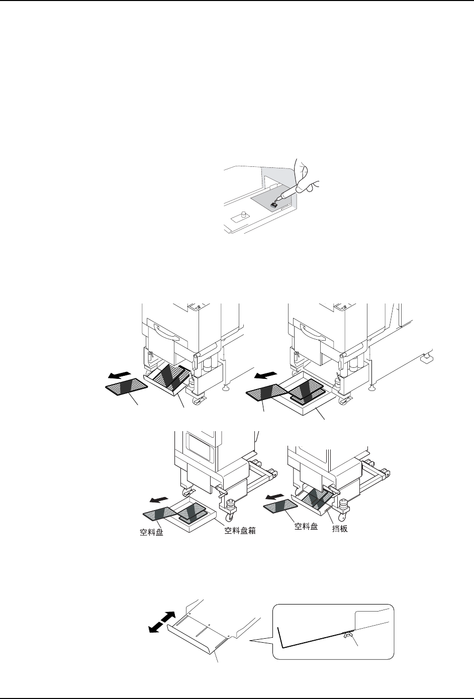 1.在设置空料盘箱和挡板的时候,无论何种情况请都用手回收。即使在自动运转中也可