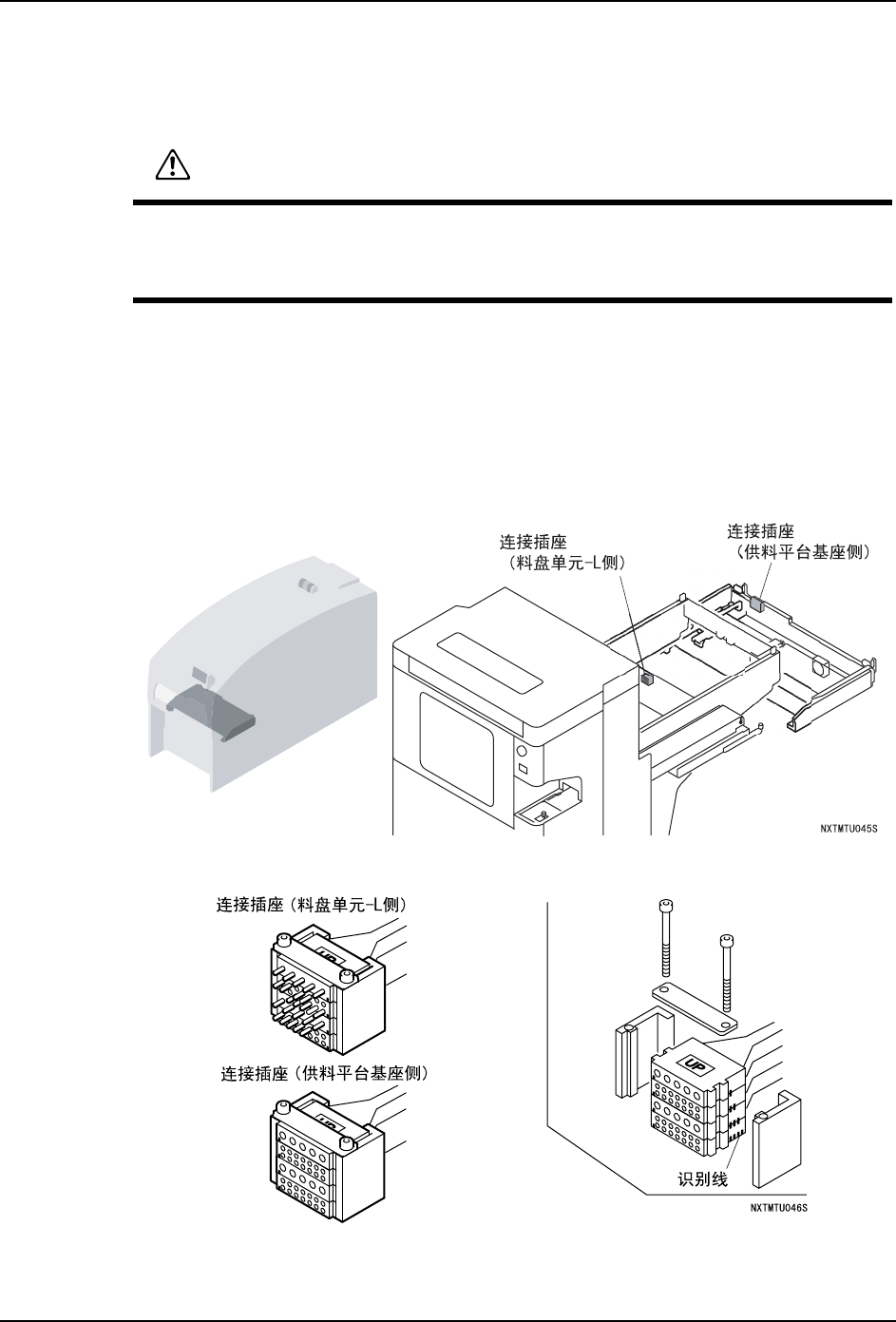 2. 在料盘单元 -L 和料站托架基座上的图示位置上有用于布线的组合插座。
