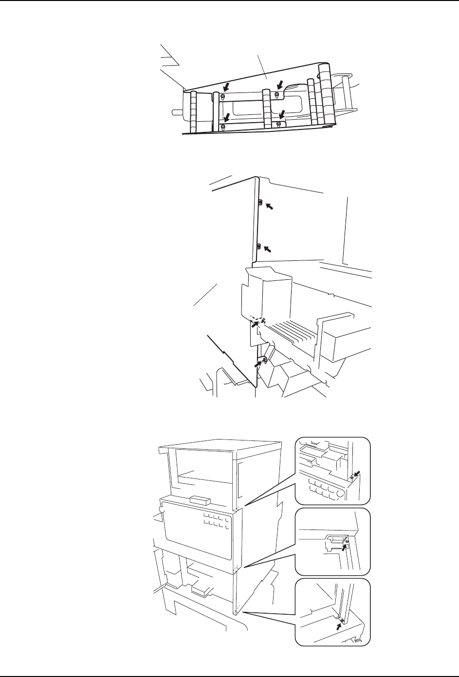 4. 请拆除下图所示的侧盖板 ( 右侧 ) 的固定螺丝 (3 处 )。
