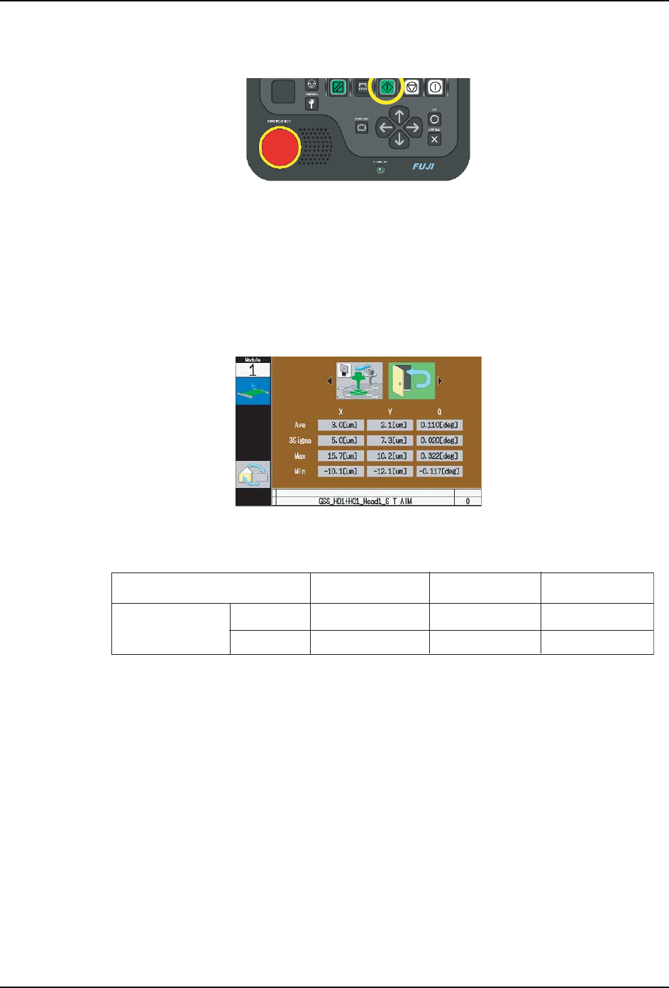 QD145-04 9. 测定和调整 NXT Ⅱ机械手册 399 解除 PA M 测定模式时, 请选择 「远程 操作」- 「机上 PAM」- 「解除 PAM 模 式」 。选择 「开 始」- 「返回」时,模组返回通常的运转画 面。此外,根据 PAM 测定模式 的设定、恢复生产 等,从机器上删除 Job。 9.1.9 测定方法 请按以下步骤进行测定。此外, 在支撑板上安装了支撑销的时候, 请事前将其除去。 注意 )在安放支撑销的状态下进行测定…