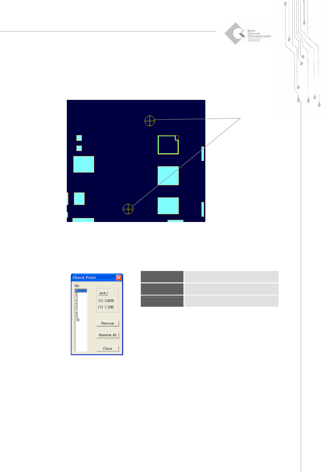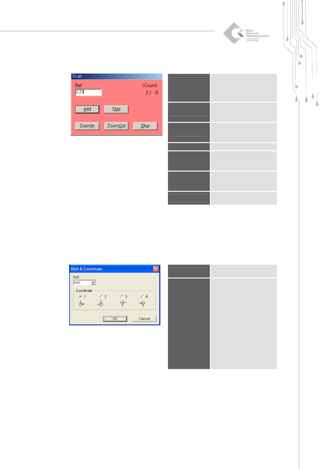 50 | KY-8030 Series (KYOS-2007001_rev0) 3D In ‐ line Solder Paste Inspection Systems 12) Scan Referen ce (Currently not used) You can scan thr ough a group of identical p ads within a work area as i f they we…