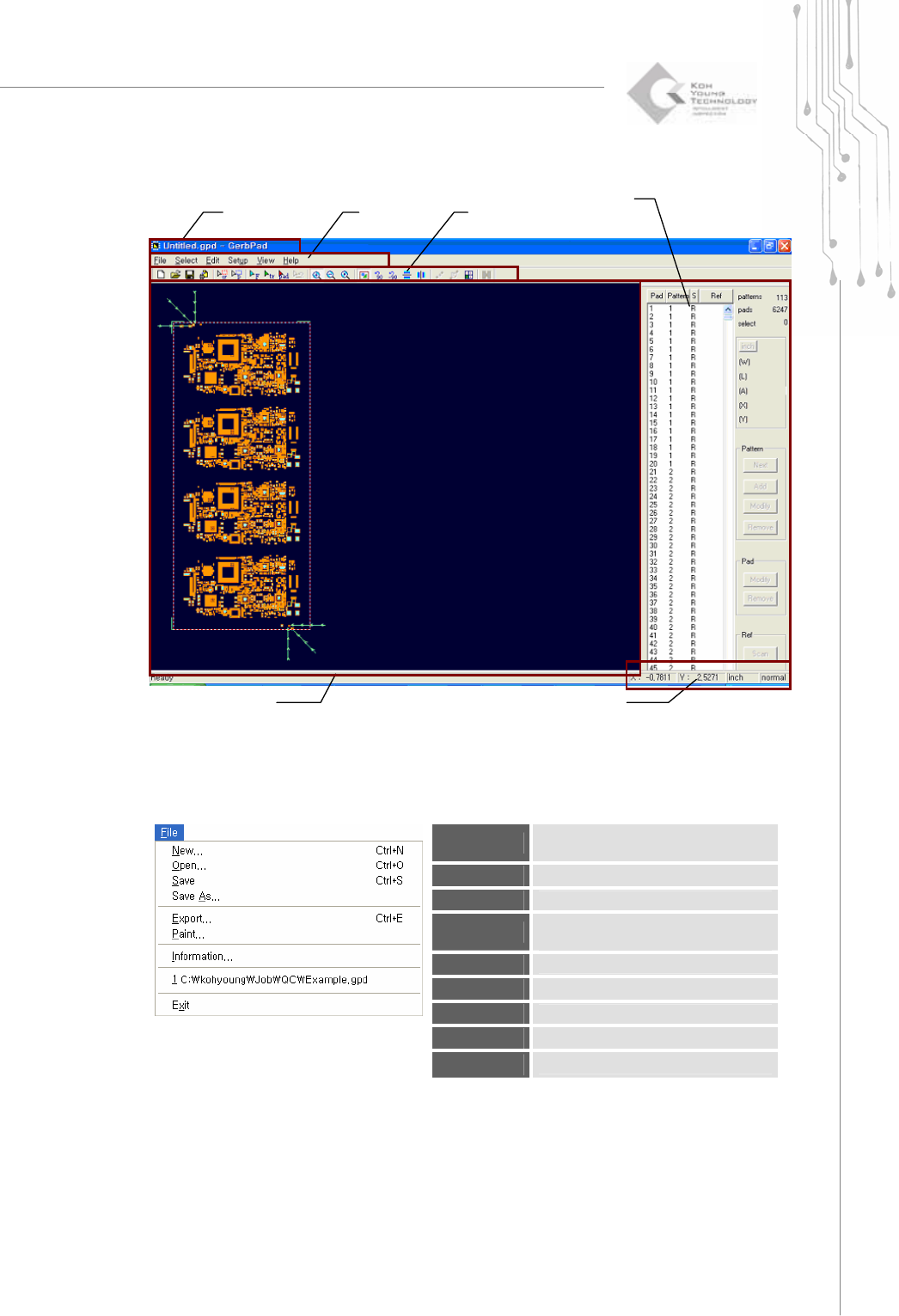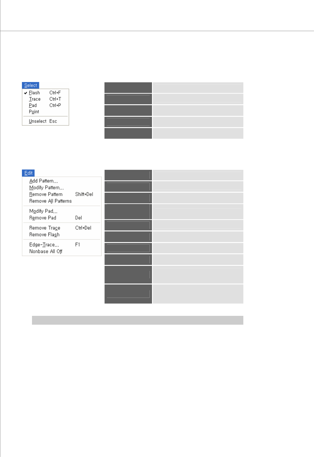 4 | KY-8030 Series (KYOS-2007001_rev0) 3D In ‐ line Solder Paste Inspection Systems 2) Select Menu Flash * Select flash(es). Trace * Select trace(s). Pad * Select pad(s). Point Select a point. Unselect Cancel…