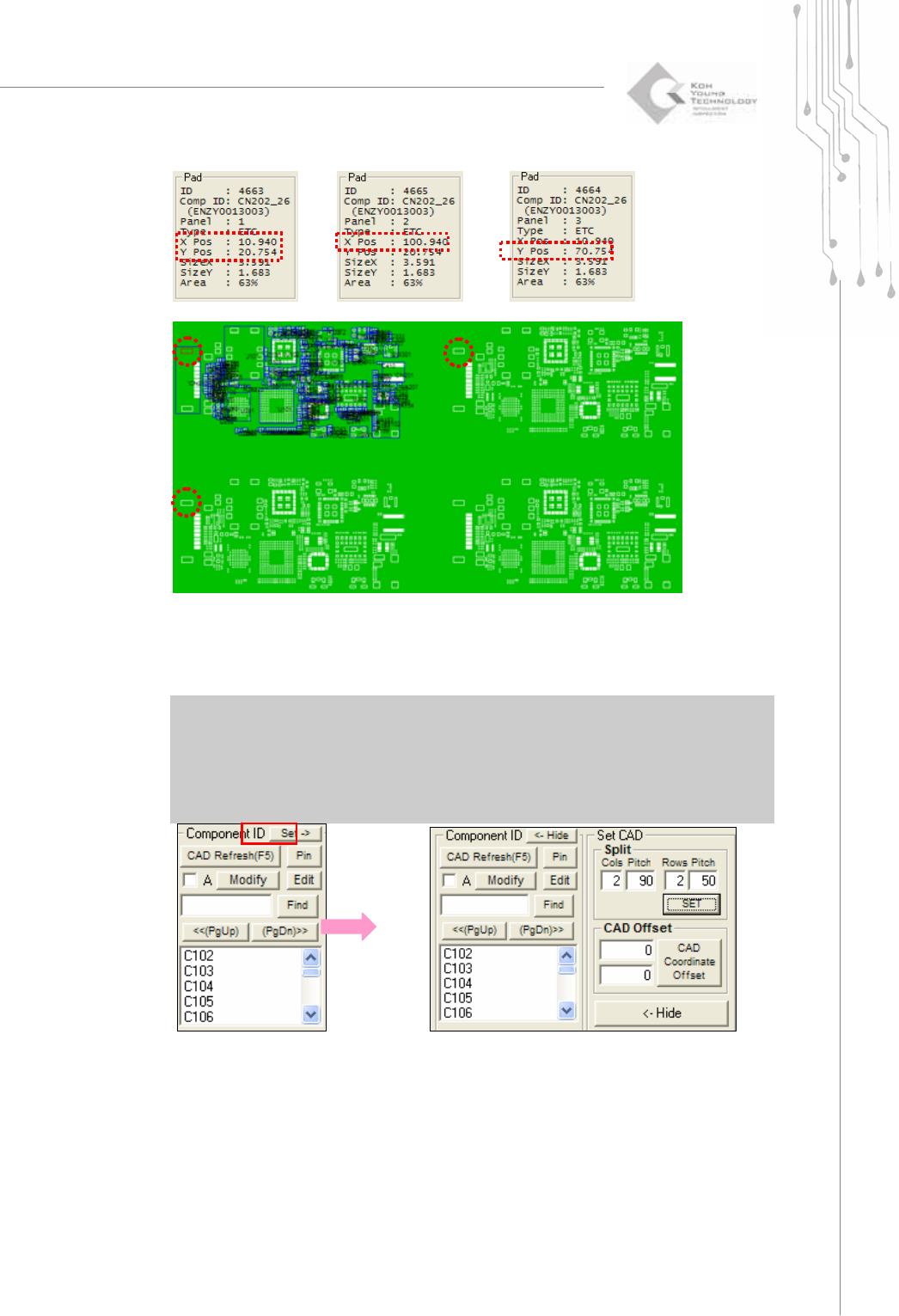 Programmers Manual | 81 3) Click the Set button under the “Comp onent ID”. Because the board has tw o columns and two rows, enter 2 for Cols and 2 for Rows. Pitch represents the spacing in the board. Enter 90 f or Cols P…