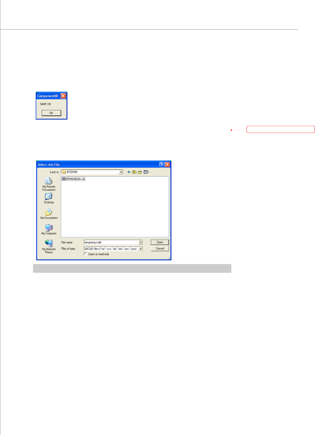 Save the job file (*.mdb). A confirmation window appears as follows: