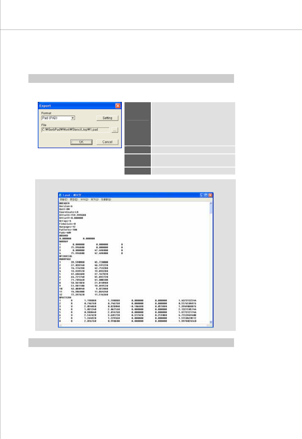 24 | KY-8030 Series (KYOS-2007001_rev0) 3D In ‐ line Solder Paste Inspection Systems 5) Export (Ctrl + E) Open the "Export" dialog box to export work data into a t ext file. ※ Note: Activated when m…