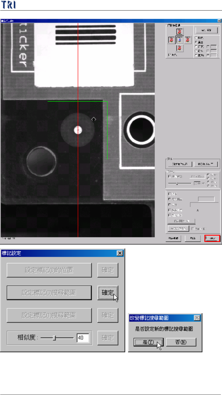l 設定標記(1)搜尋範圍 – 調整影像畫面中的綠色方塊,使之合乎想要的搜尋