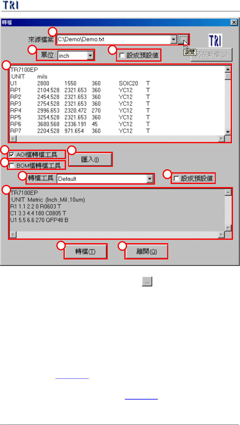 l 在第三章 1.1. [開啟元件資料檔案]對話框中,按下[轉檔工具],會出現以下