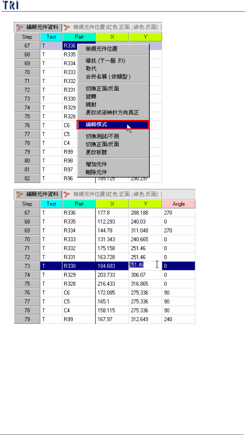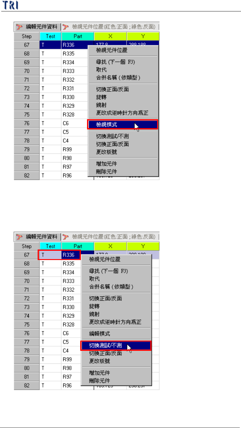 第 三 章、 A T PG 功 能 介紹 T R 7500 E 使用手冊 1 37 l 在 編輯 模 式 下可以 選擇 [ 檢視 模 式 ] ,將 模 式 回 到 檢視 模 式 , 避免 資料 因 為 不 小心 按 到而 更改 。