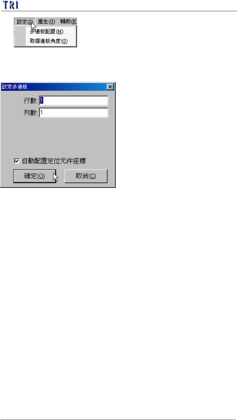 l 按下[多連板配置]功能,會出現[設定多連板]視窗,以重新設定多連板的行