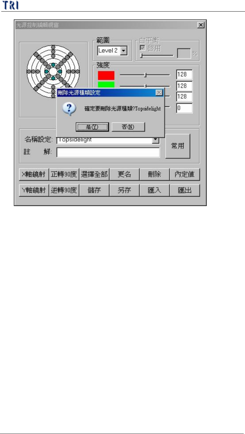 (13) 刪除(Delete) – 刪除目前所選擇的燈光,確認後請按下[是]。