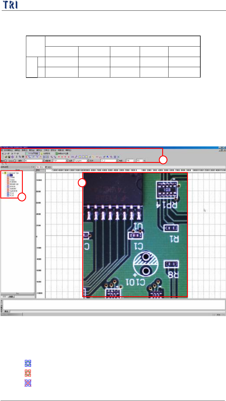 (3) 影像區 – 在此區放置檢測框並建立元件資料庫。可以按住滑鼠左鍵拖曳來