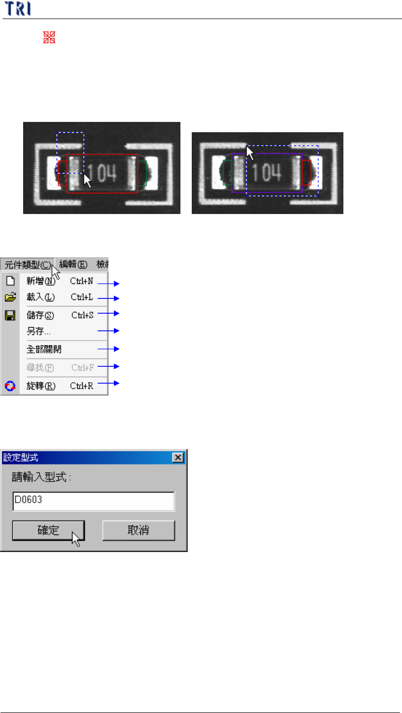 (3) 影像區 – 在此區放置檢測框並建立元件資料庫。可以按住滑鼠左鍵拖曳來