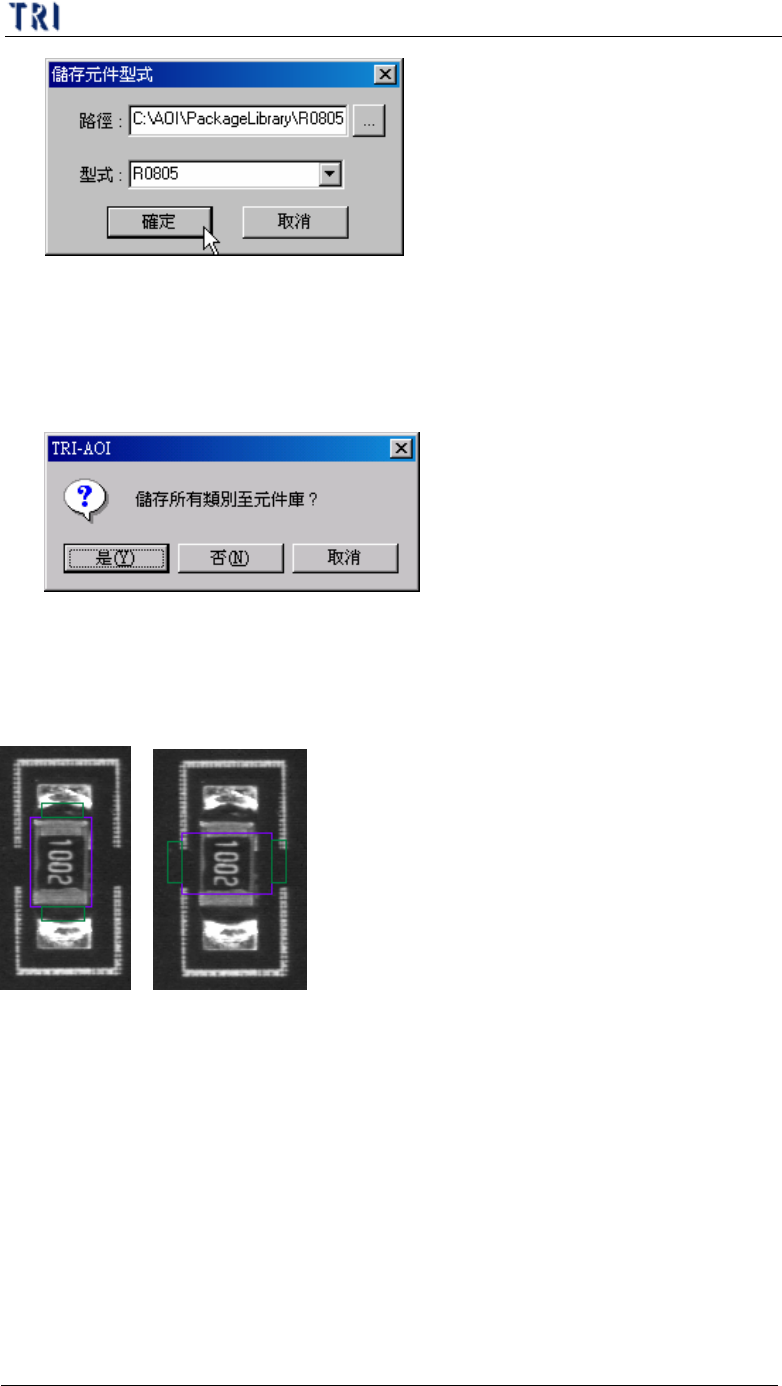第 三 章、 A T PG 功 能 介紹 T R 7500 E 使用手冊 1 62 10.1.5. 全 部 關閉 l 將 目前 所有 開啟 的 頁籤關閉 ,可 節省 一 個個 關閉 的時 間 。按下 [ 全 部 關閉 ] 會 出 現 以下 視窗 。按 [ 是 ] 表 示 儲存所有形 式資料庫 ,按 [ 否 ] 表 示全 部不 儲存, 按 [ 取 消 ] 表 示關閉 的 動作取 消 。 10.1.6. 旋 轉 l 將 檢測框 旋 轉,按 …
