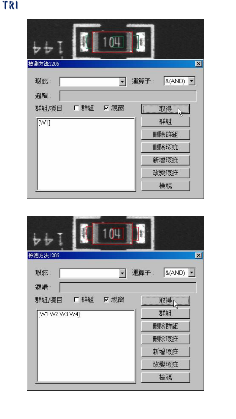 第 三 章、 A T PG 功 能 介紹 T R 7500 E 使用手冊 1 78 n 選 取多 個 檢測框 名稱 n 多 個 檢測框 分 多 次 取得