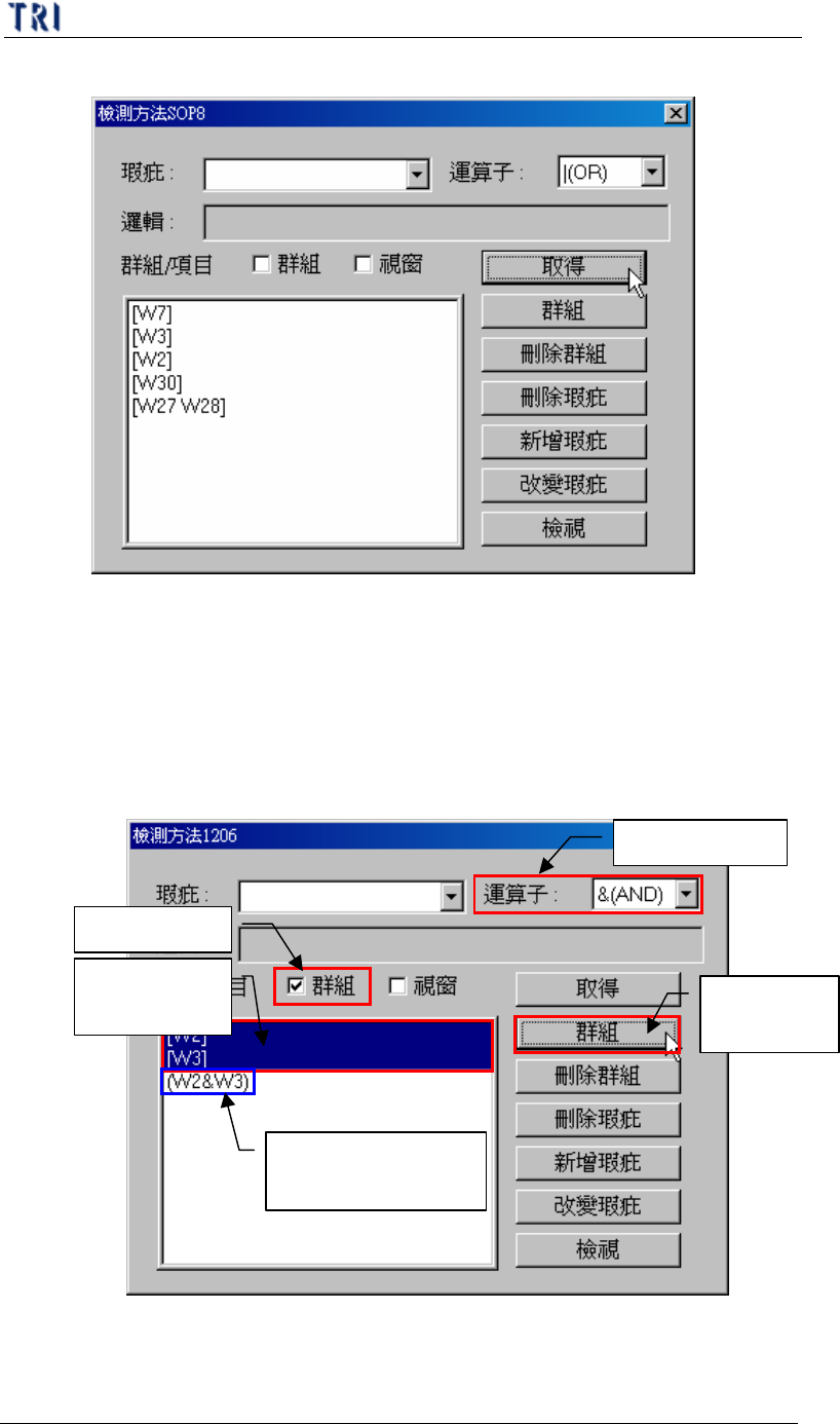 l 群組(Group) – 按下後系統會依目前所選擇的邏輯運算子設定到所選定