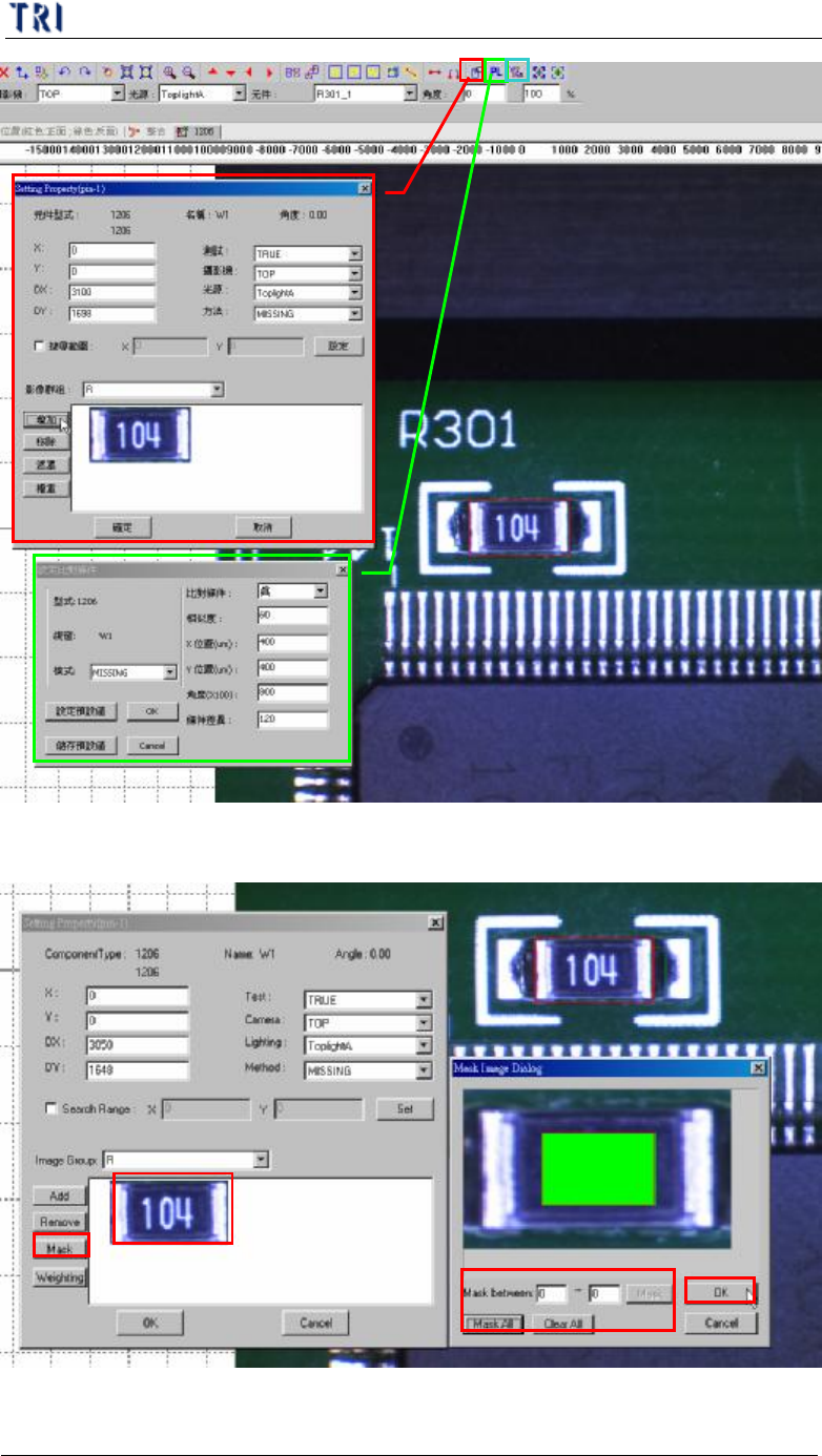 第 三 章、 A T PG 功 能 介紹 T R 7500 E 使用手冊 1 99 ( 6) 設定標 準 影 像 不 測 的 部 分。 ( 7) 設定影 像的 [ 權 重 ] 2 2 1 1 3 3 4 4 5 5