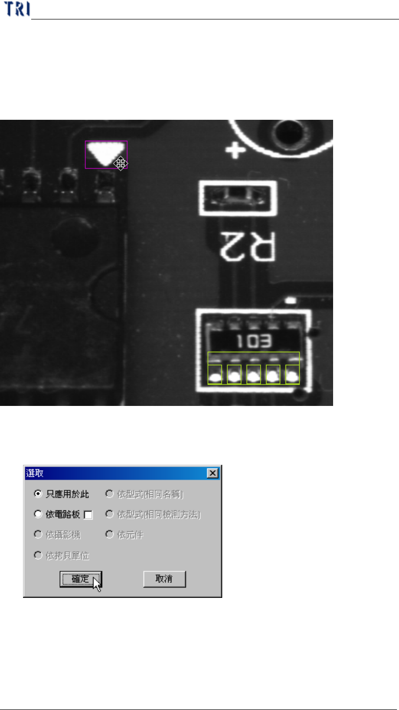步驟2. 出現以下檢測框。[依電路板]選項點選表示將此設定套用到其他片